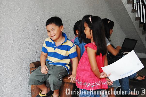 Today is the last day of graduation rehearsals. The sky was overcast and the heat was not so extreme, which is really a blessing. Given that the previous times we had to travel from Antipolo to Paranaque, we were all on the verge of heat exhaustion. The hubby took a picture of my my son and his friend, Tiffany with me on the background (far right) and a fellow homeschooling mom and her kid.