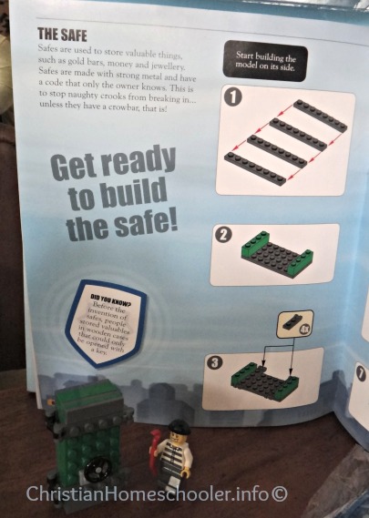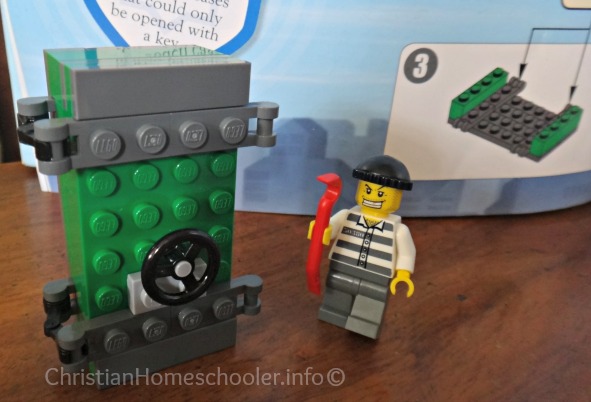 The first thing he built from the Lego City was the safe and this crook with a crow bar. He has since built a policeman, helicopter, Â police car and getaway car just by following the instructions. Truth is, I can leave him with his Lego set for hours on end and he will be at it enjoying every minute.