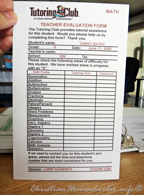 Our homeschooler taking the Skills Assessment Test in Tutoring Club