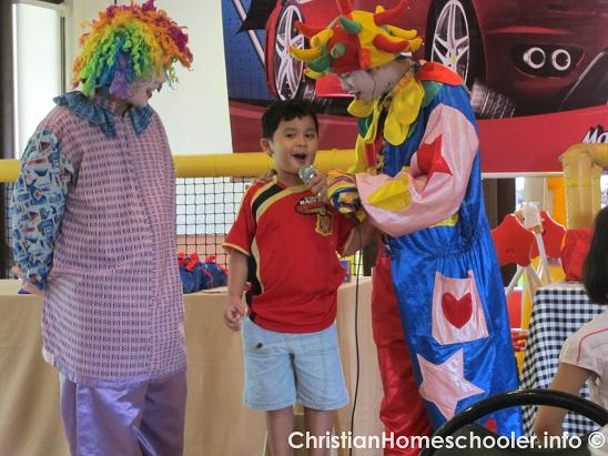 Our five year old homeschooler was the youngest to join this particular game in another kiddie party he attended last weekend over at Max’s in Quezon City. Although he mostly struggled as he tries to answer in Tagalog (his primary language being English) – the clowns were asking in Tagalog, he went through with it like the confident little man that he is.