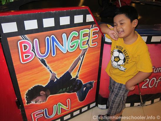 Here is our little guy’s first attempt at Bungee Fun, which he has been wanting to try for a sometime. So he tried. He was one thrilled boy. ๐