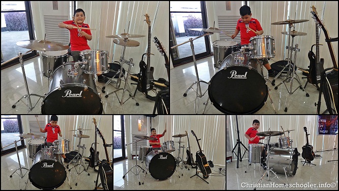Our homeschooler has clearly taken after his father in the “corny” department, no doubt about that. But it sure does look like he’s also a musician like his father. The above photo was taken yesterday at church after the service. I usually do not allow him to go playing with the instruments between services. But since there was not a lot of people around that time and with his promise that he won’t be too loud with the eagerness on his face as he said that he wanted to play with the song on the background, I allowed him for a couple of minutes or so.